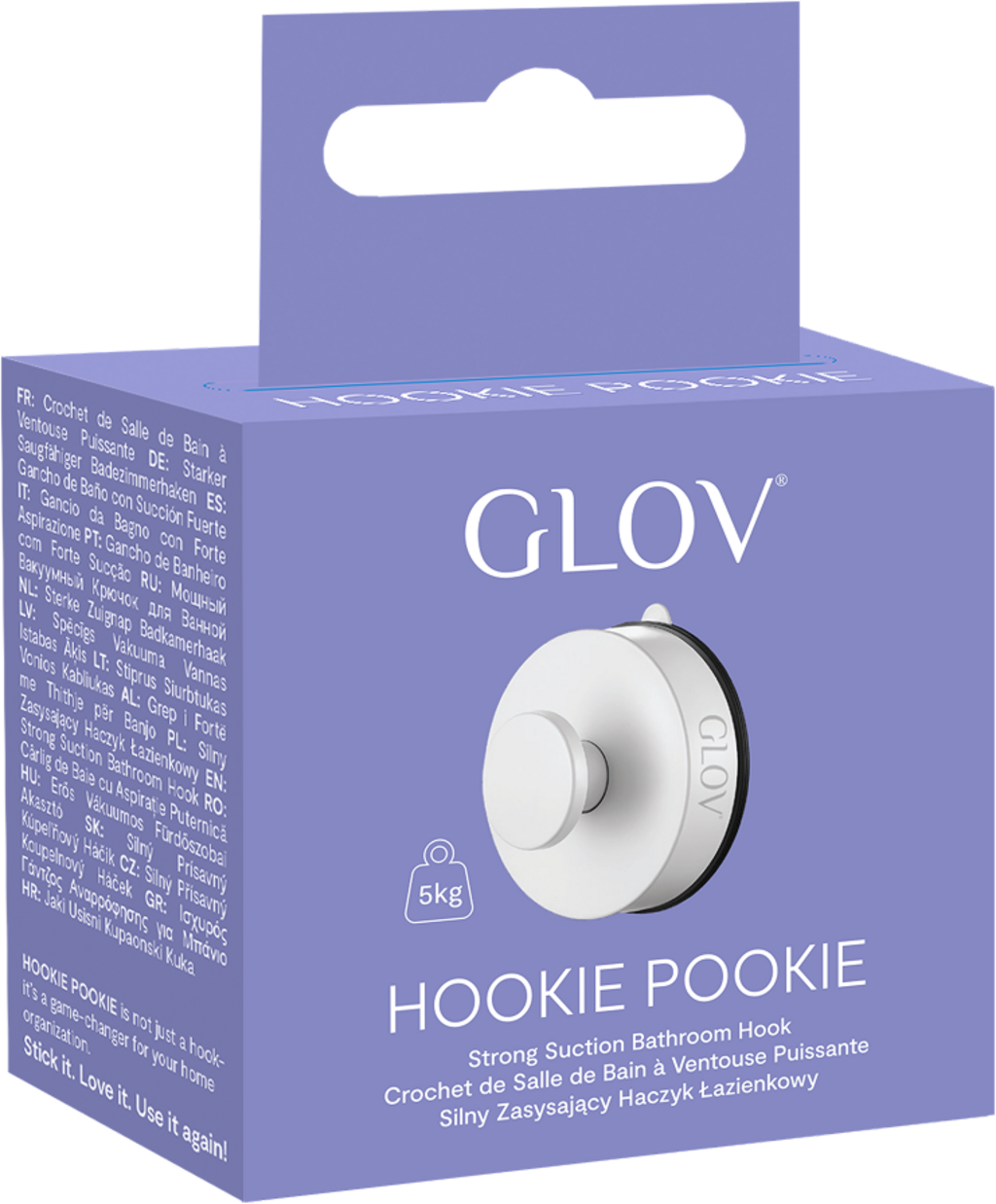 GLOV Hookie Pookie Strong Suction Bathroom Hook, White