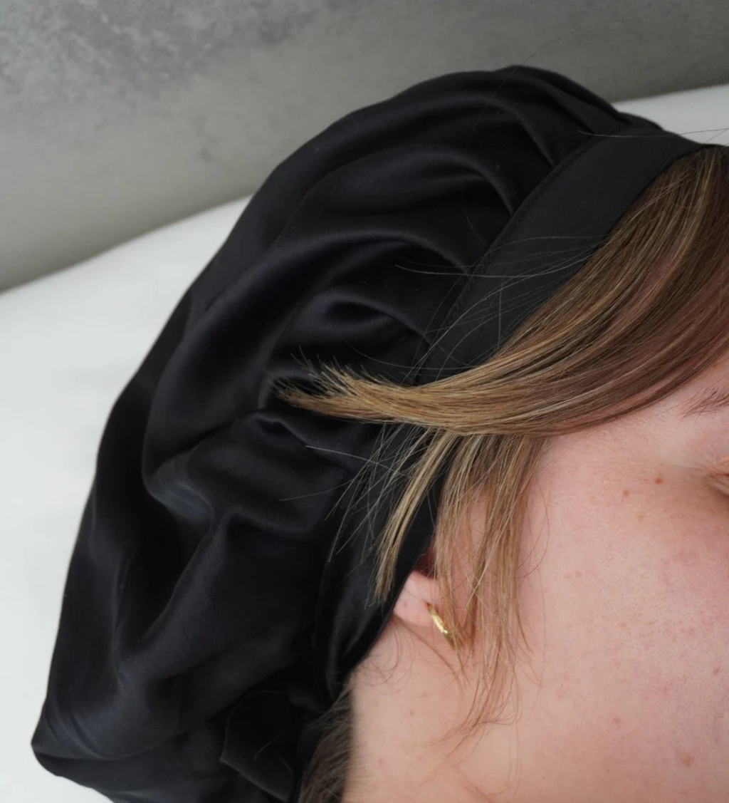 lotta curls Silk Bonnet, Black