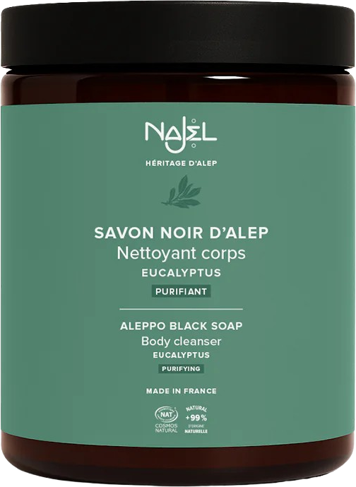 Schwarze Aleppo-Seife hat eine lange Tradition in orientalischen Dampfbädern. Sie ist das Geheimnis von strahlender sowie weicher Haut und bringt als großes Plus die vitalisierenden und klärenden Eigenschaften von ätherischem Eukalyptusöl mit sich. Für eine optimal gepflegte Haut wird ein wöchentliches Peeling empfohlen.