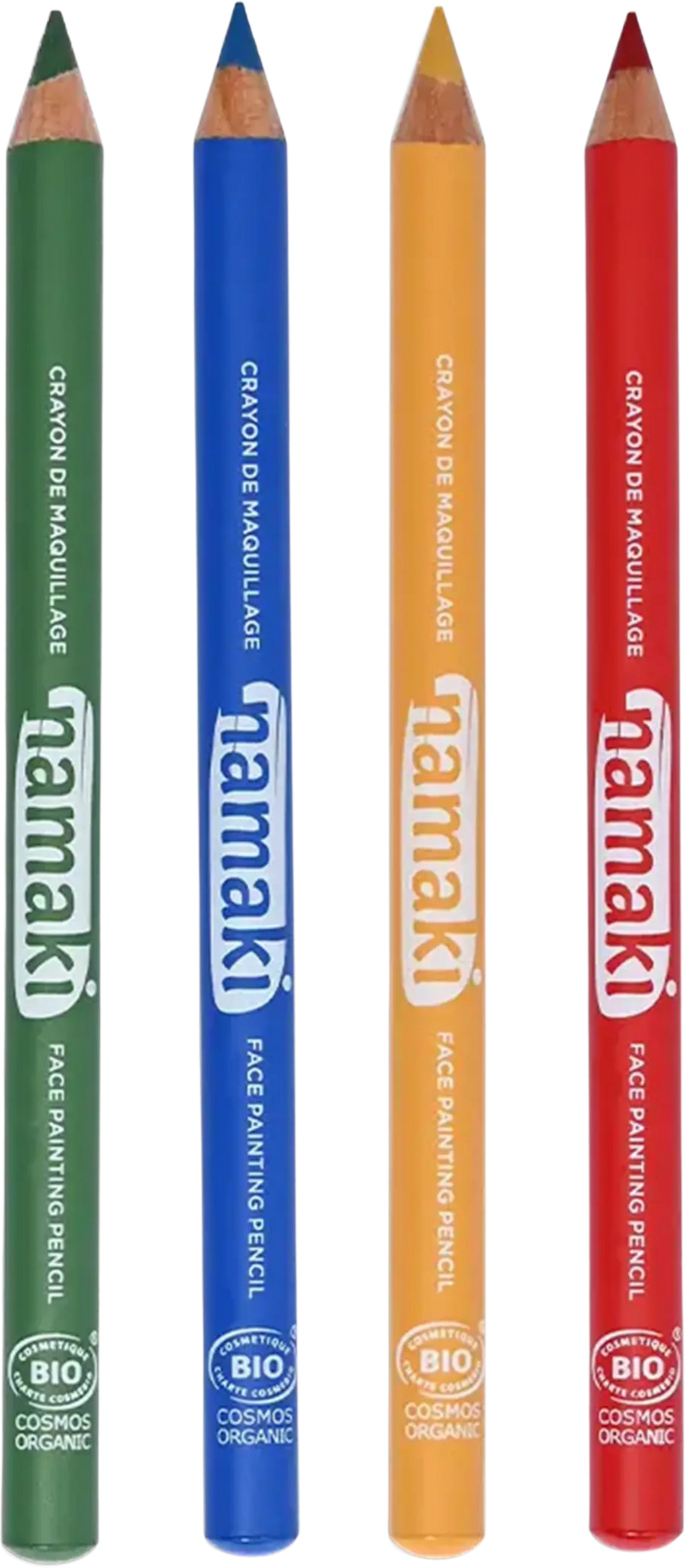 namaki Set of 4 Face Painting Slim Pencils, Grün/Blau/Gelb/Rot