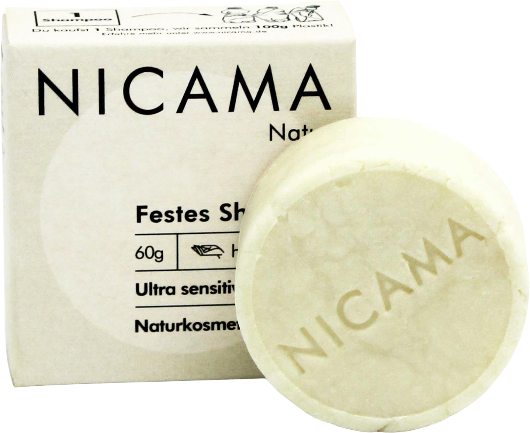 NICAMA Festes Shampoo, Natur (60 g)