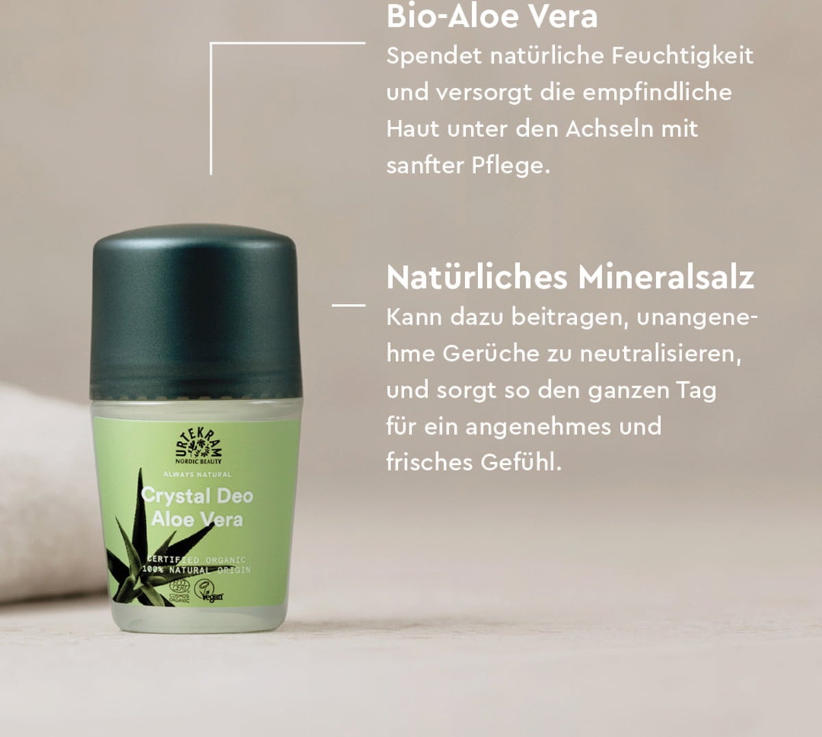 URTEKRAM Aloe Vera Crystal Deo Roll-on, 50 ml